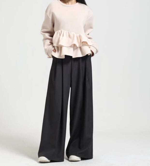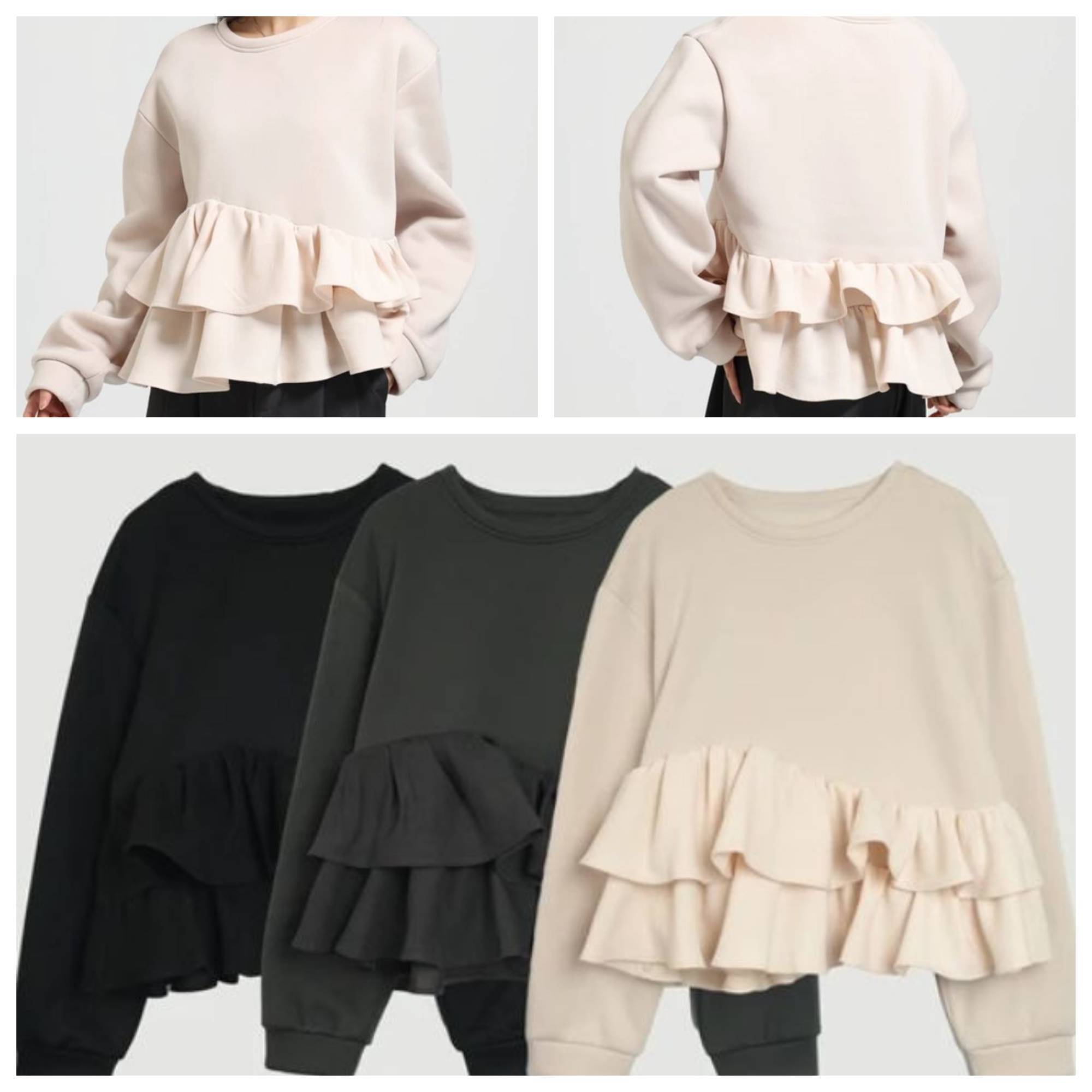 【予約販売】ダブルフリルペプラム プルオーバー トップス スウエット TOPS