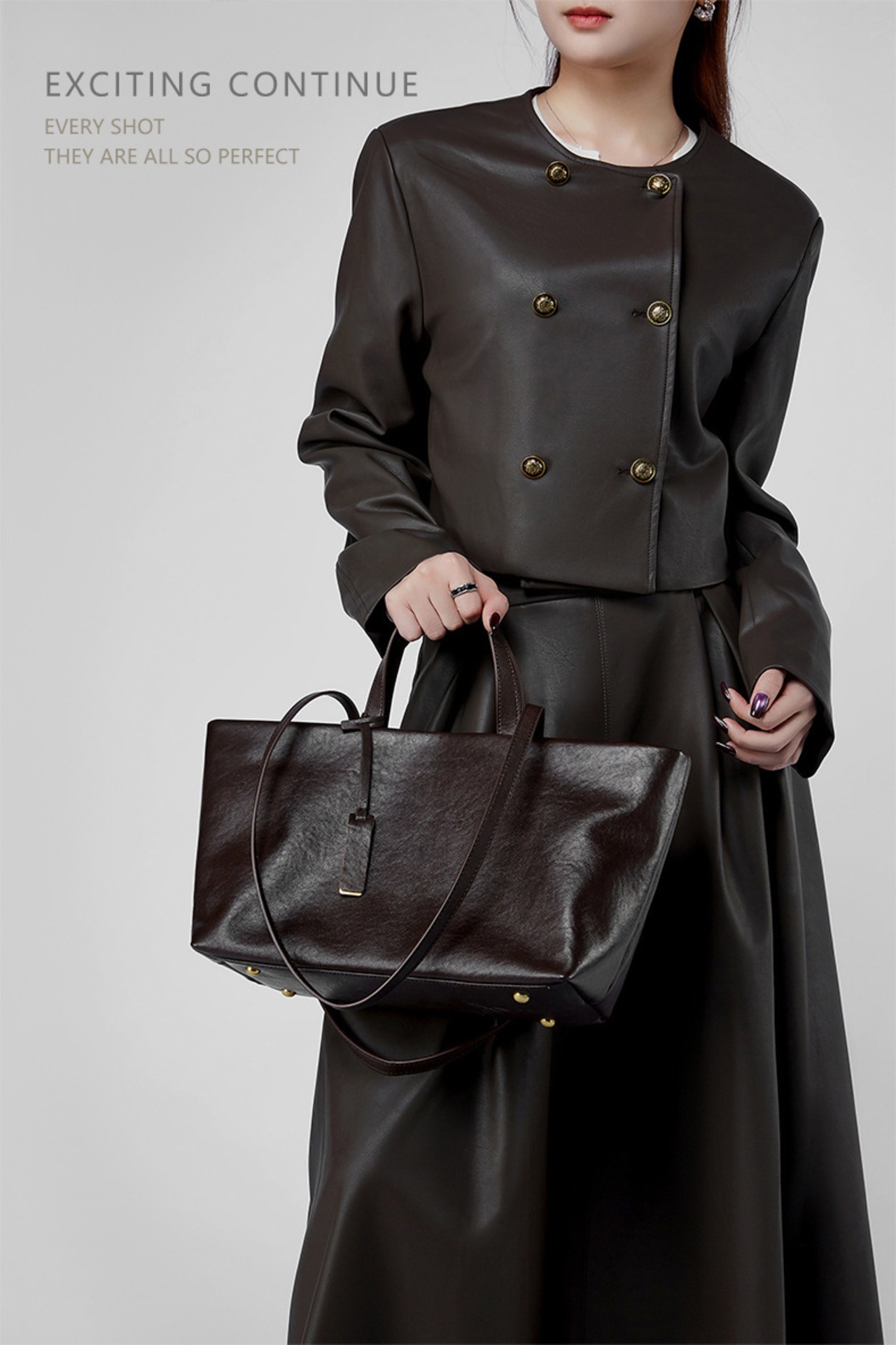【予約販売】韓国デザイン レザーオフィスバッグ トート ショルダーBAG 牛革