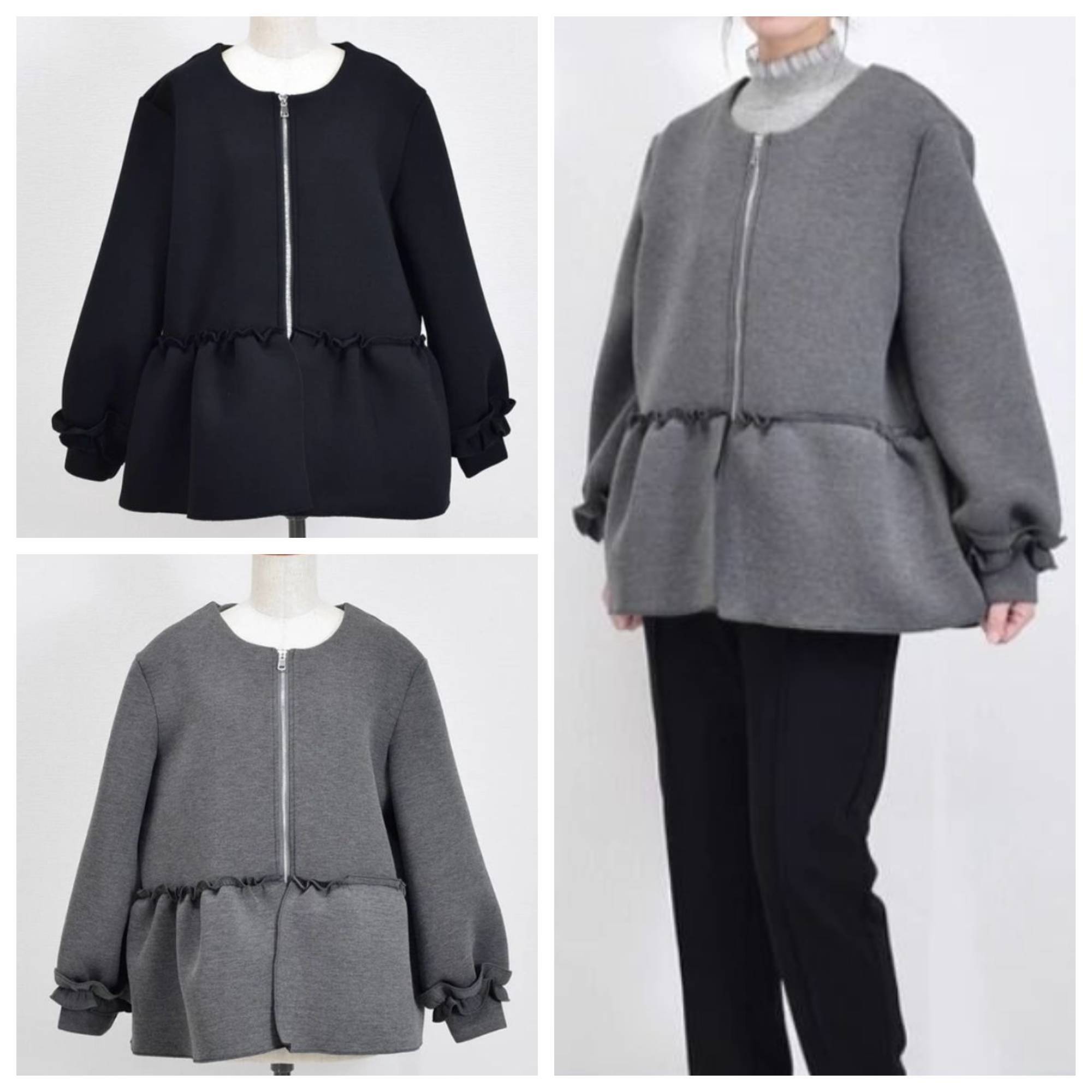【予約販売】在庫限り ダンボールペプラムジャケット ノーカラーコートJACKET