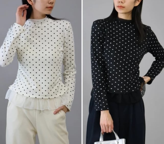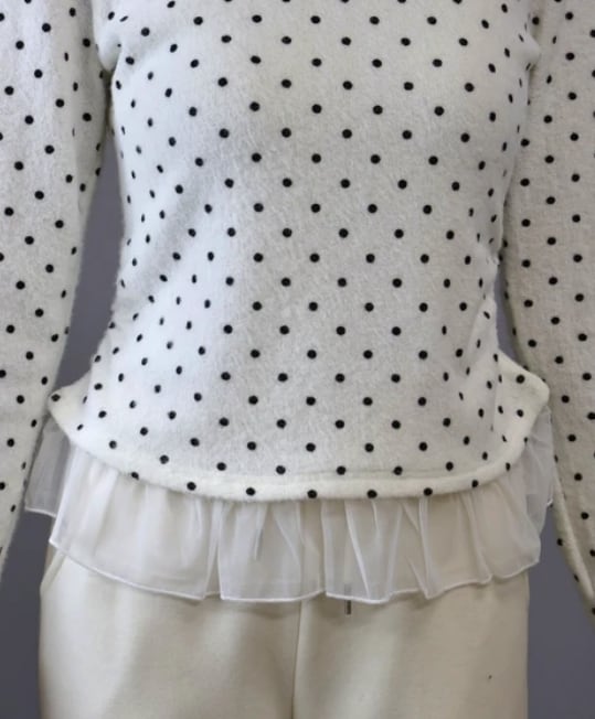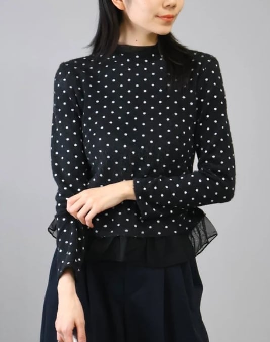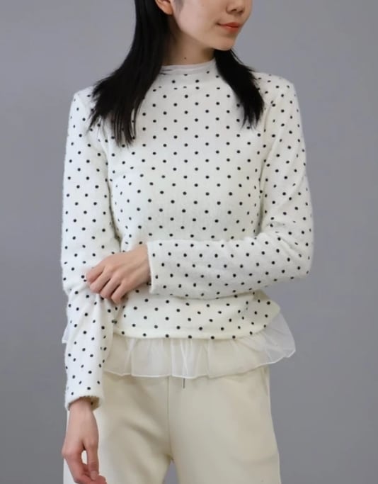 【予約販売】在庫限り デザイン チュール切り替えドットニットプルオーバー