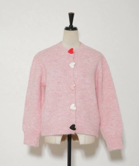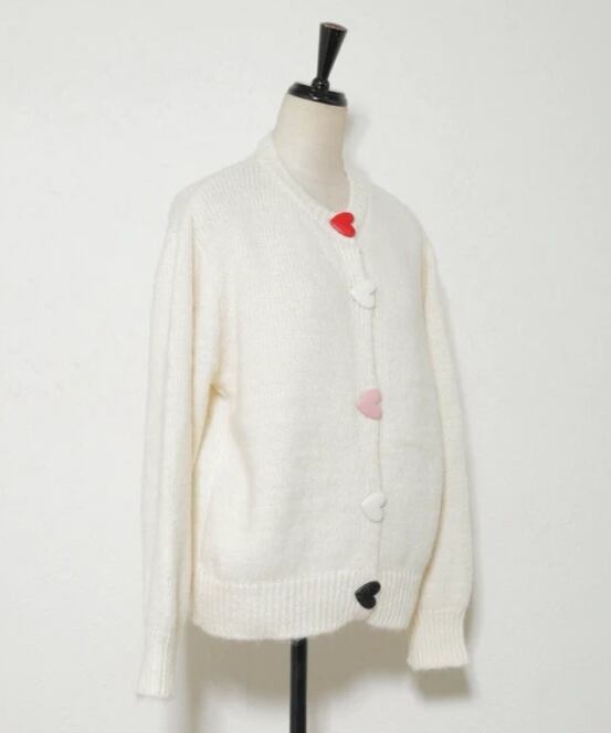 色とりどりの大きなハートのボタンが目を惹くカーディガン