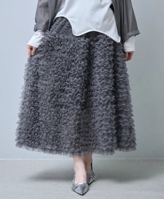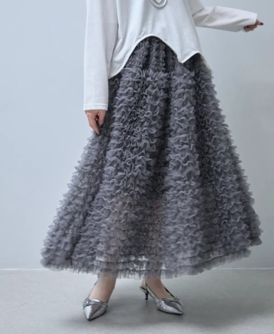 【予約販売】在庫限り 新作 チュールフリルスカート ロングスカート シフォン
