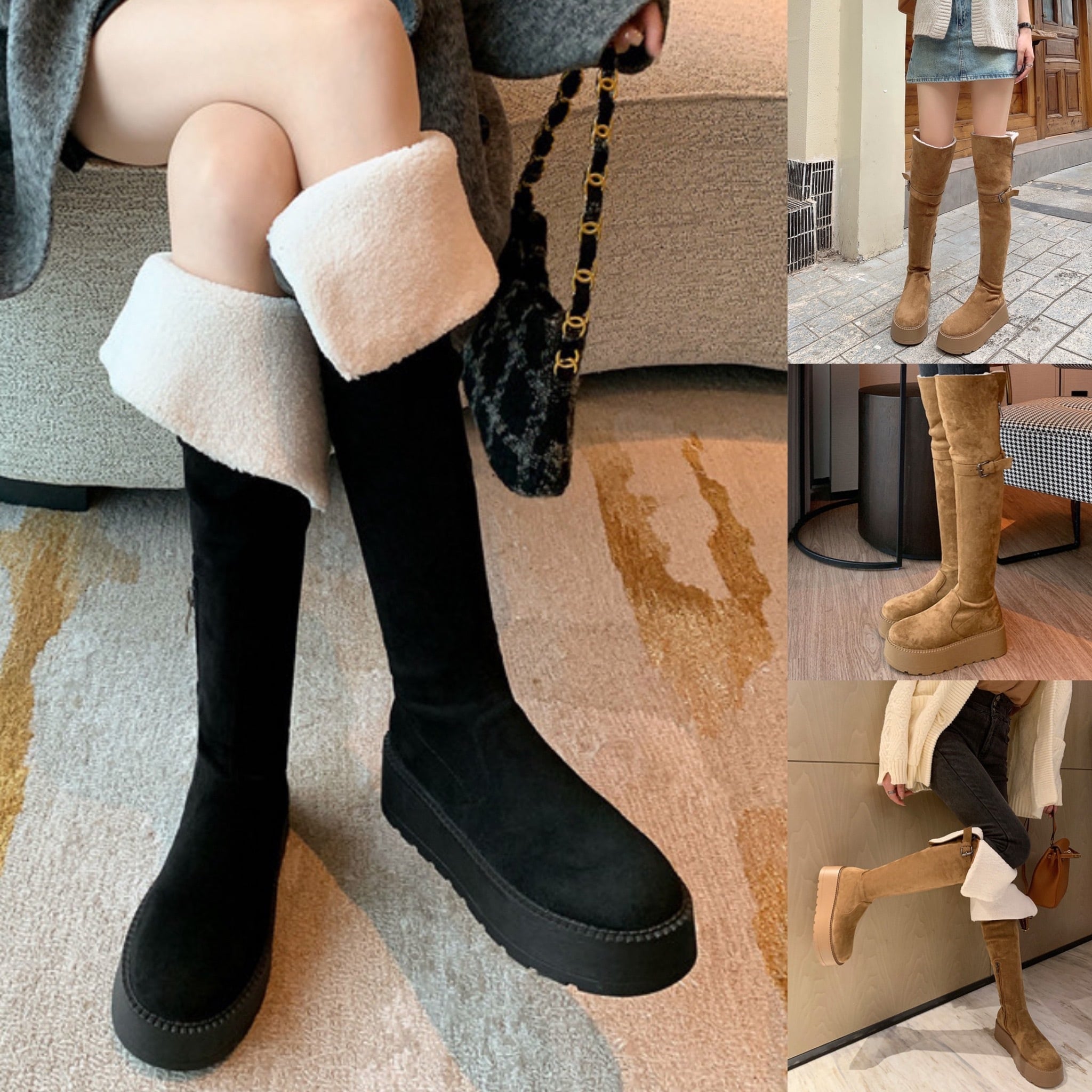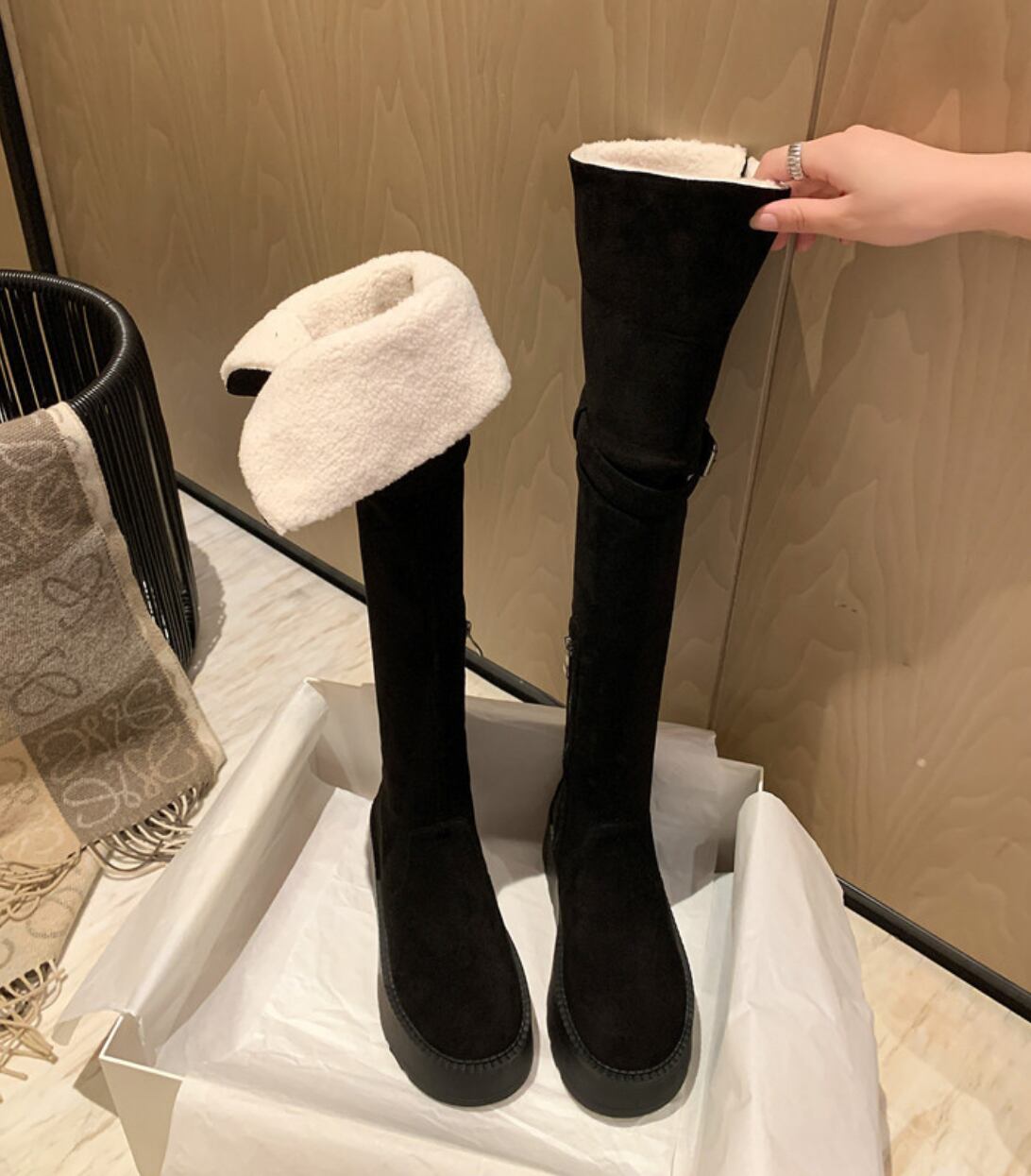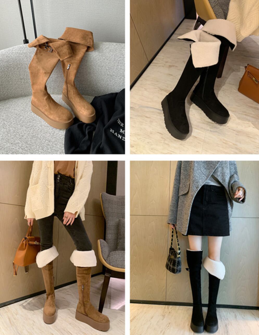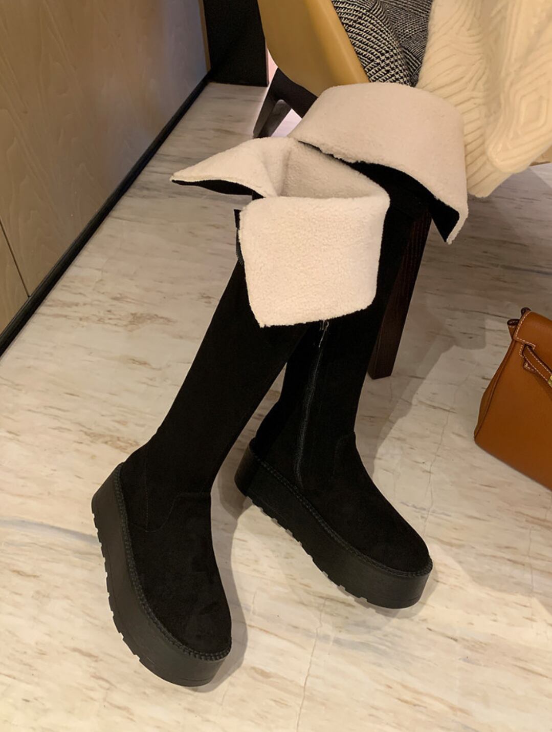 【予約販売】韓国デザイン 厚底 ムートンニーハイロングブーツ 折り返し