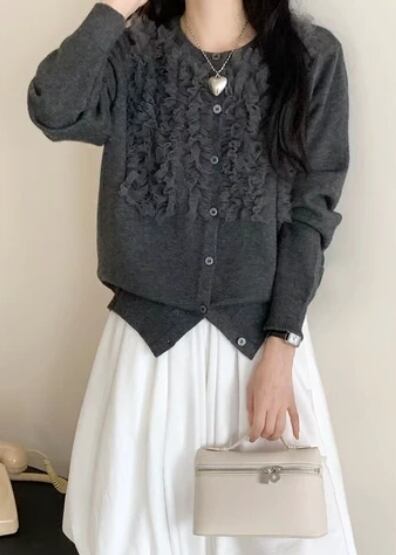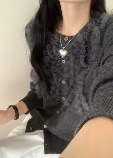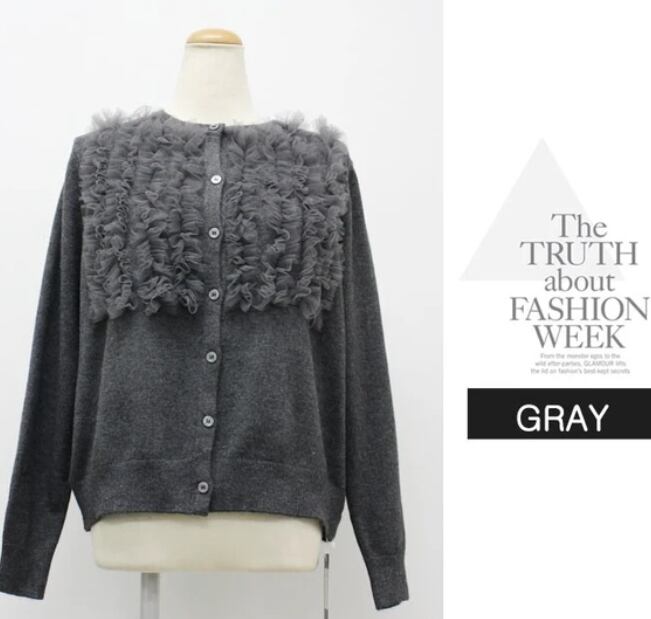【予約販売】セレモニーにも使える♪ チュールニットカーディガン フリル