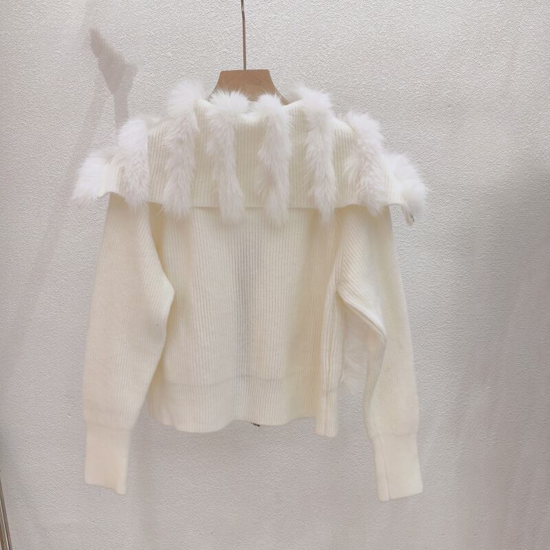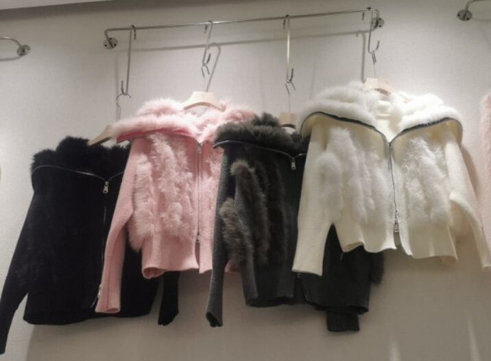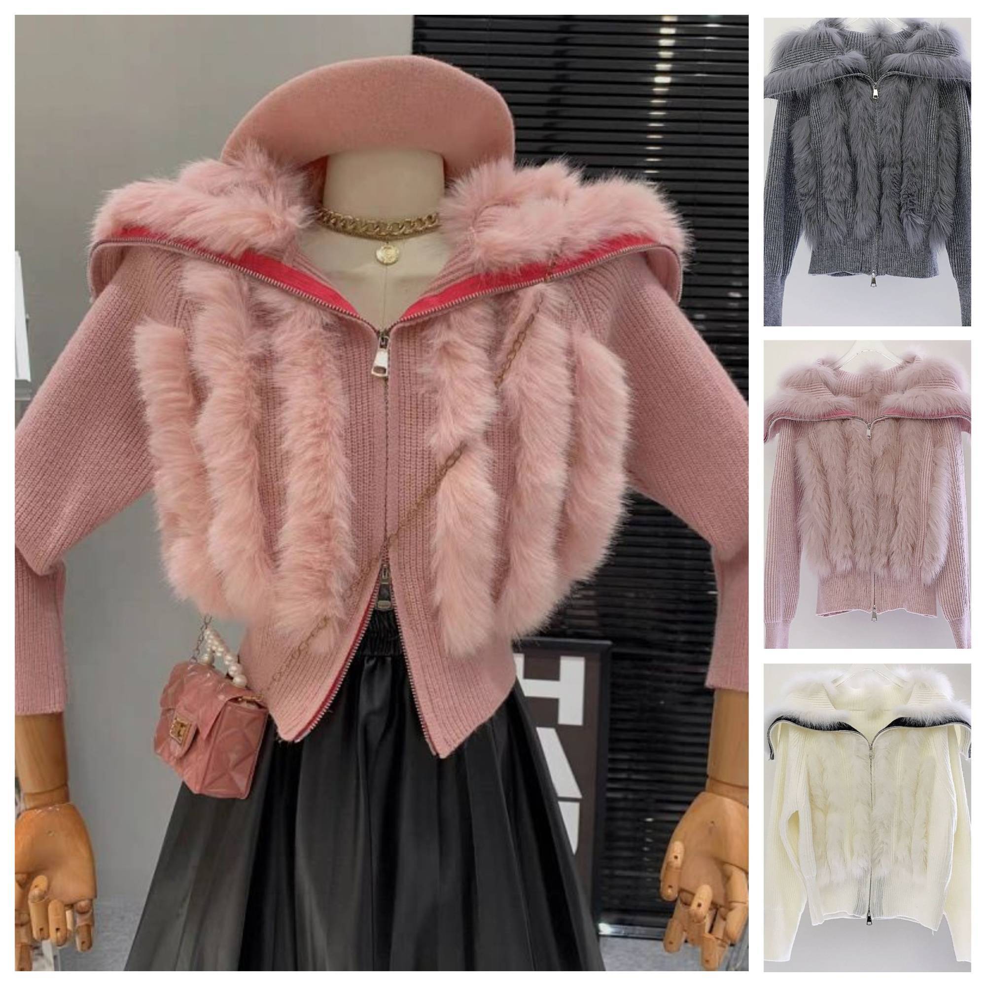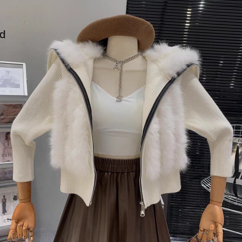 【予約販売】韓国デザイン リアルファー ラビット 毛皮ニットジップアップ
