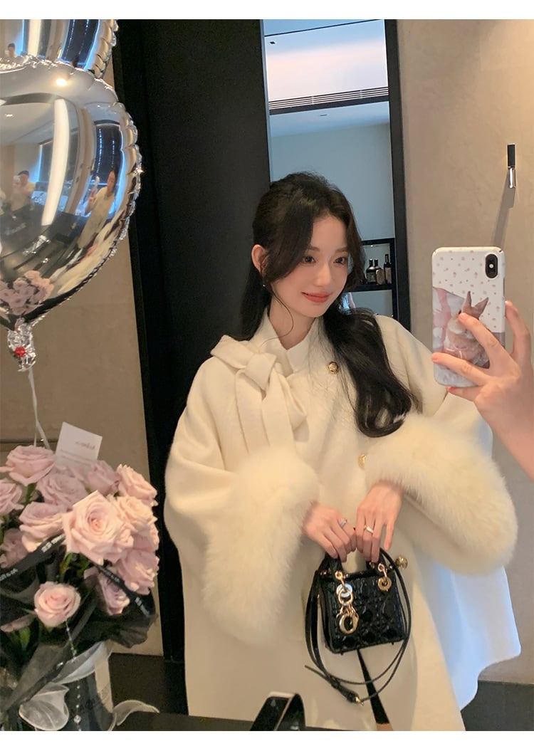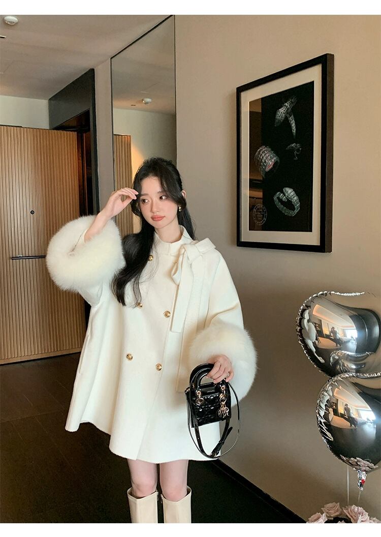 【予約販売】韓国デザイン リアルファー 毛皮マントコート ケープ フォックス