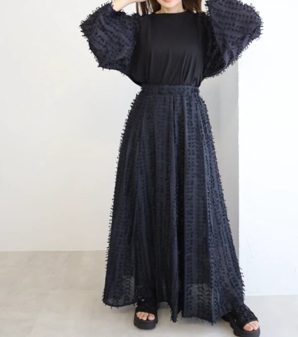 【予約販売】スピード配達 リボンジャガードロングゴムスカート チュール