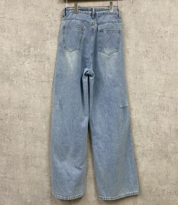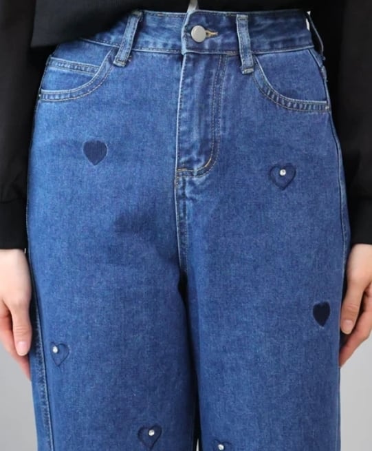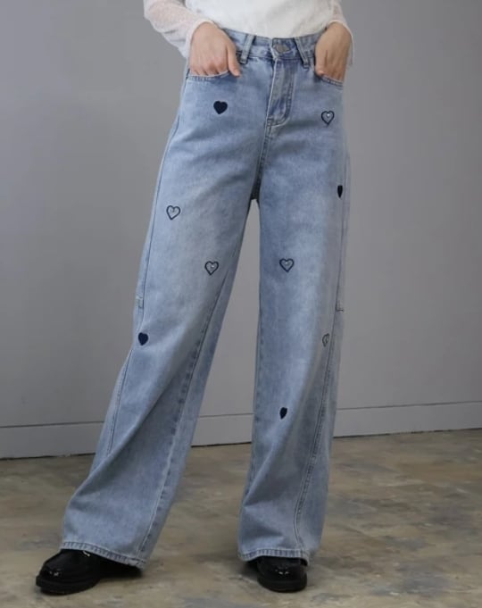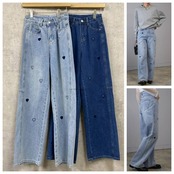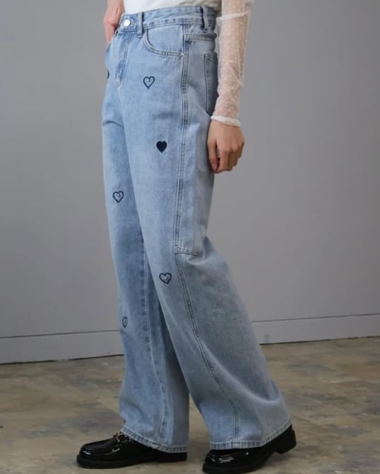 【予約販売】スピード配達 ハート柄ビジュ付き デザイン デニムパンツ DENIM