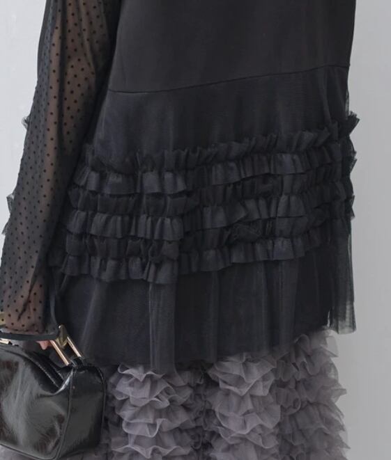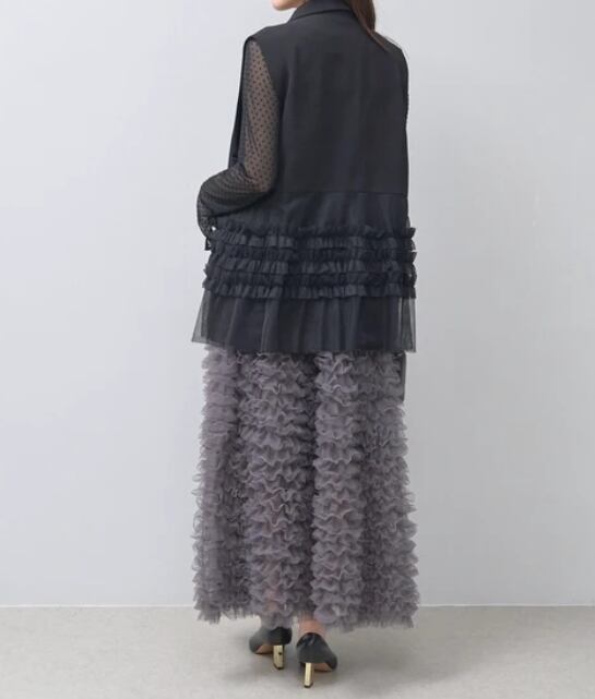 【予約販売】チュールフリル付きロングベスト セレモニー オフィス ジレ