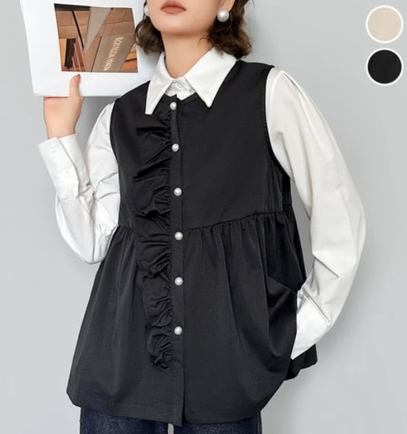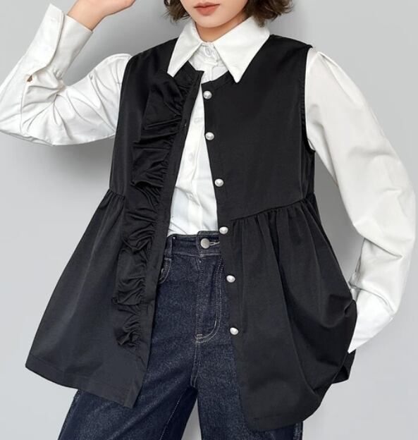 【予約販売】フリル ペプラム ベスト ジレ パールボタン セミオケージョン