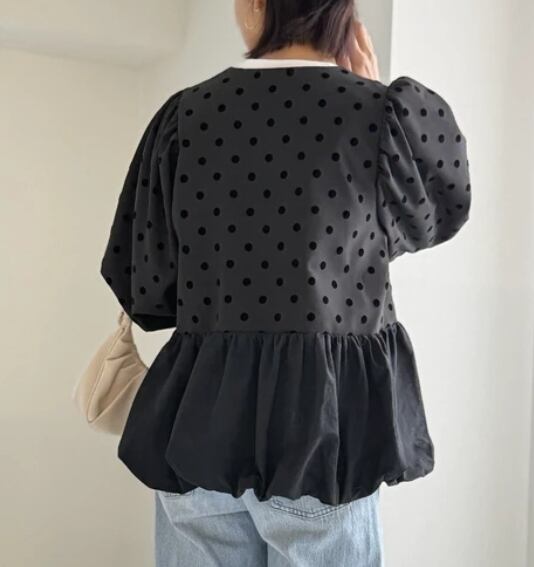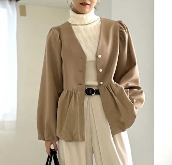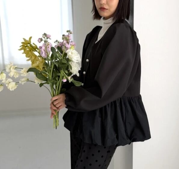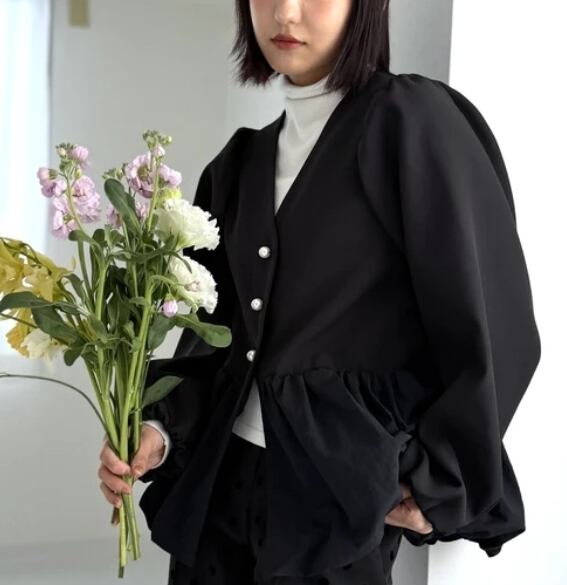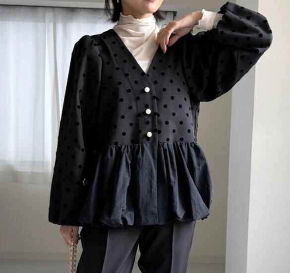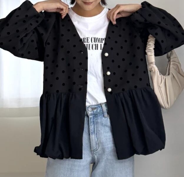【予約販売】バルーン裾Vネックジャケット パール風 ドット セレモニーJACKET