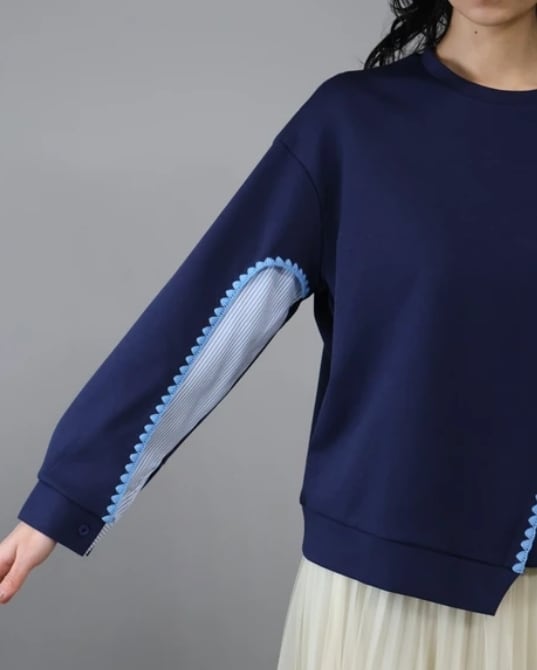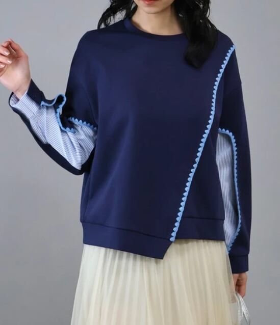 【予約販売】異素材ドッキングデザインプルオーバー スウェット 個性的シャツ
