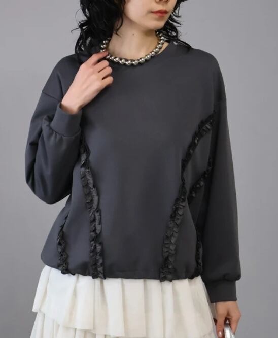 【予約販売】スピード配達!フリルデザイン シャーリングプルオーバー TOPS