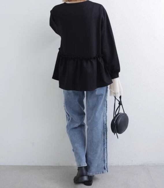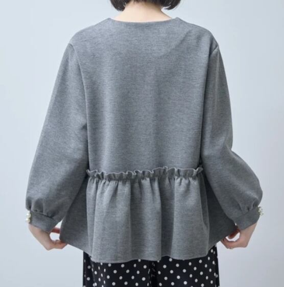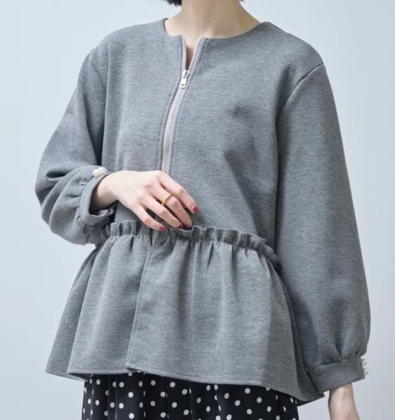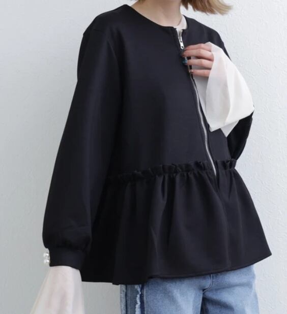 【予約販売】フワもち素材 袖パール 丸首フリルジャケット ペプラムJACKET