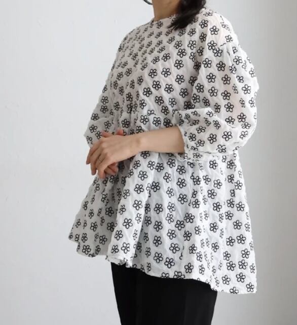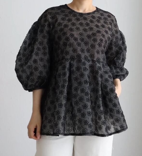 【予約販売】体系カバーふんわりチュニック 花柄 パフスリーブTOPS ブラウス