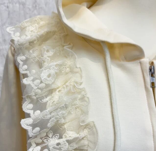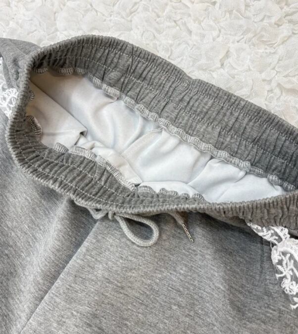 【予約販売】かわいい スウェットセットアップ レース付パーカーフリルパンツ