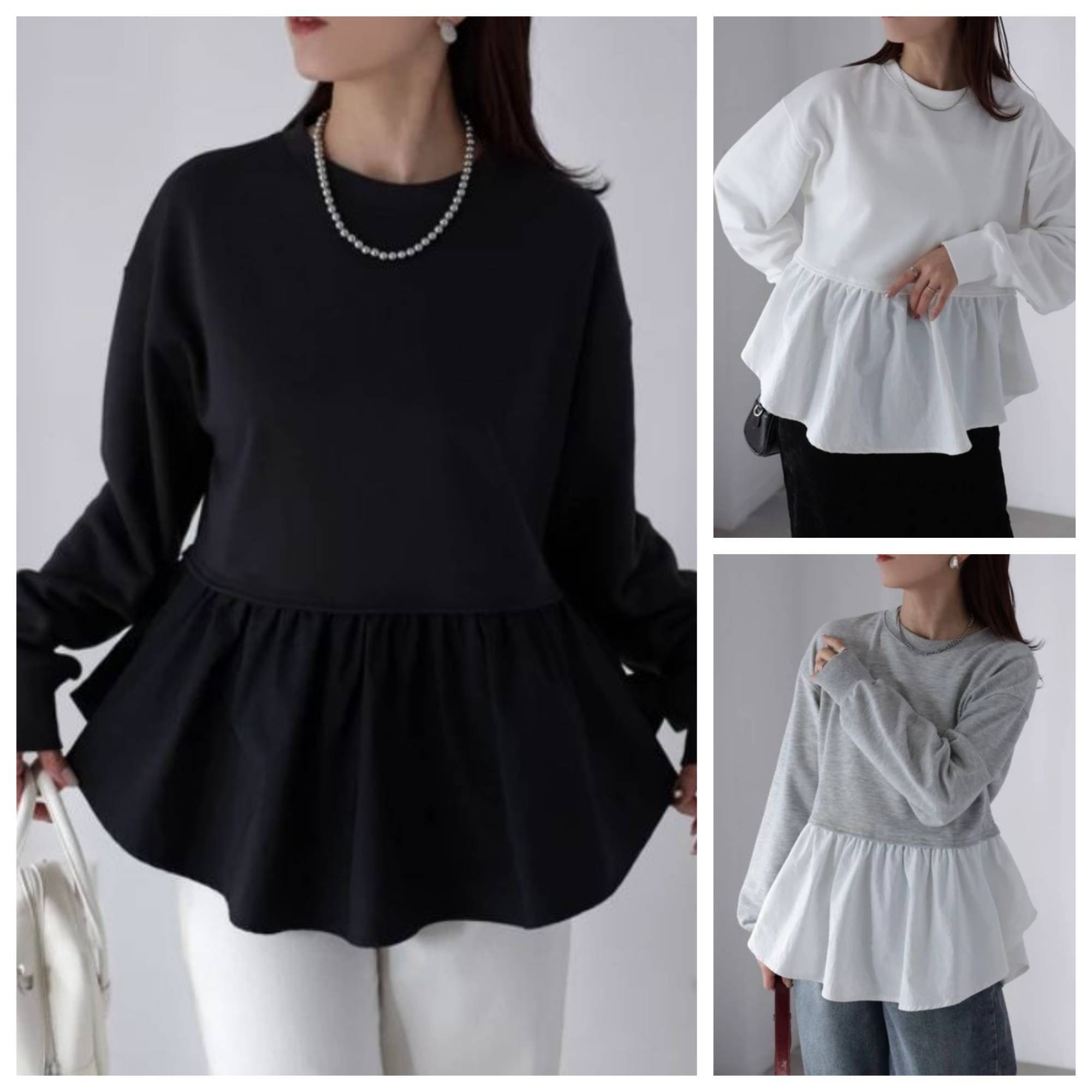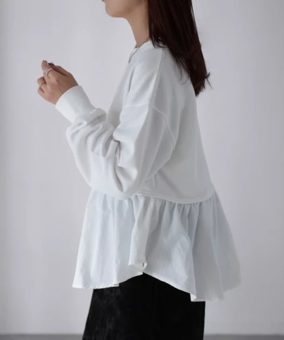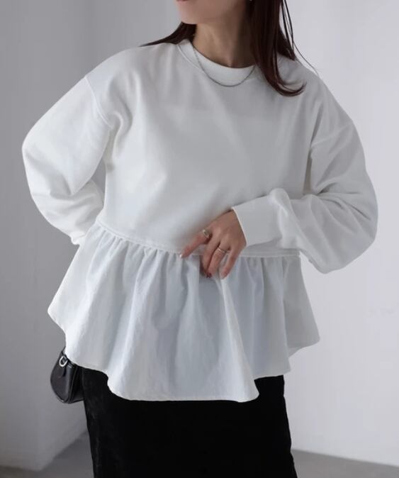 【予約販売】【2026SS】裏毛ペプラム異素材ドッキングスウェット トップス