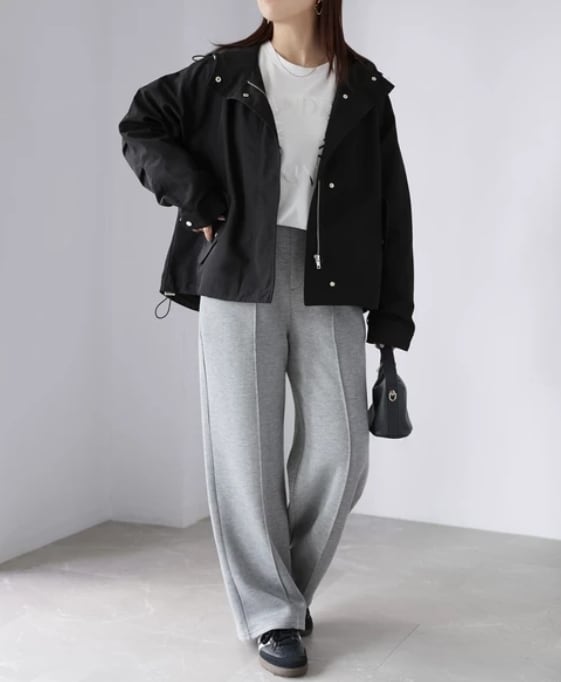 コードを絞れば丸みのあるフォルムになり、カジュアルながらも女性らしい印象に様変わり。