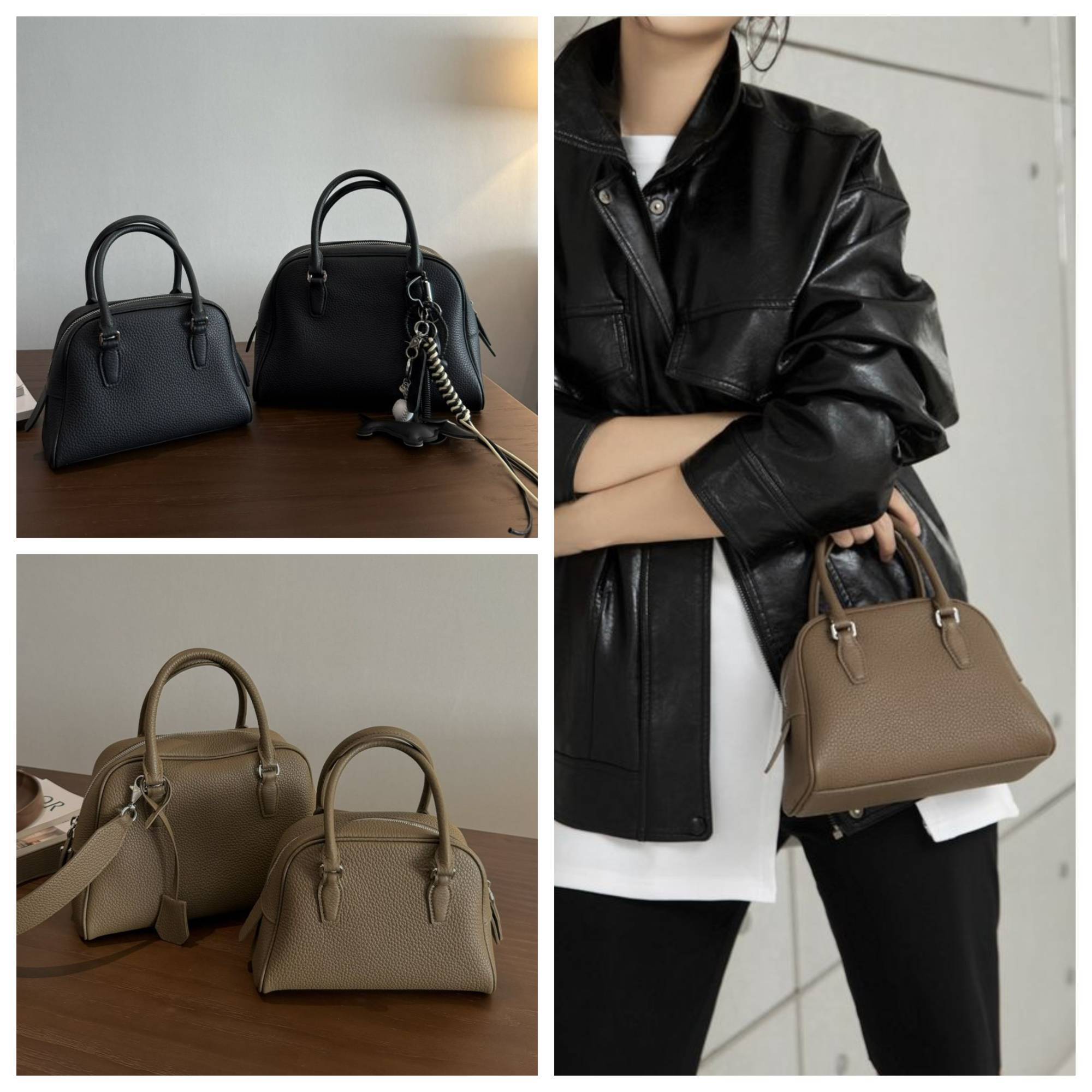 【予約販売】韓国デザイン Mサイズ 牛革ボーリングハンドバッグ ショルダー
