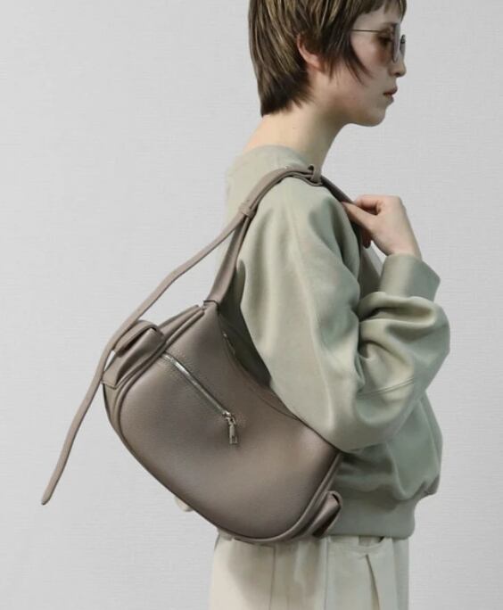 丸みを帯びた柔らかな曲線が、大人カジュアルな雰囲気を醸し出すショルダーバッグです。