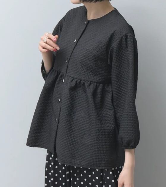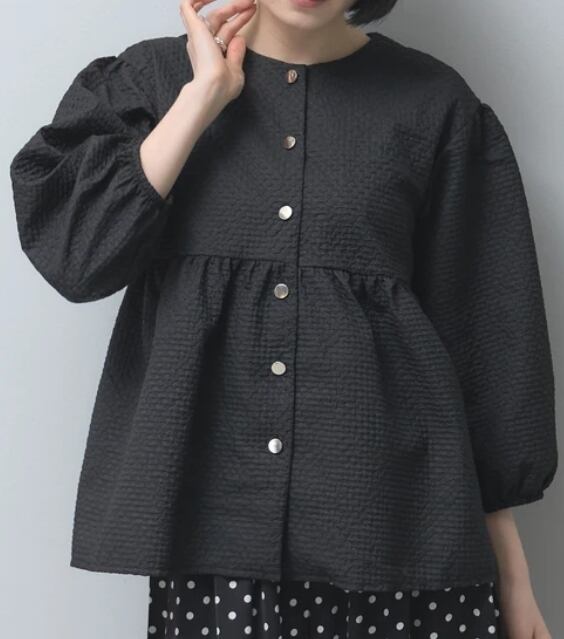 【予約販売】【2026SS】型押し切替ジャケット ノーカラーペプラムJACKET