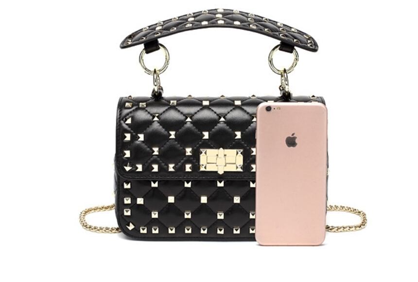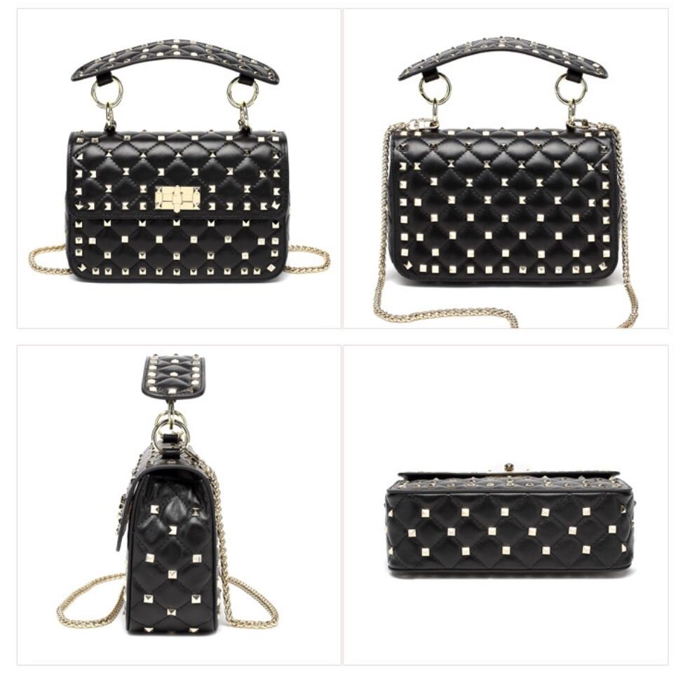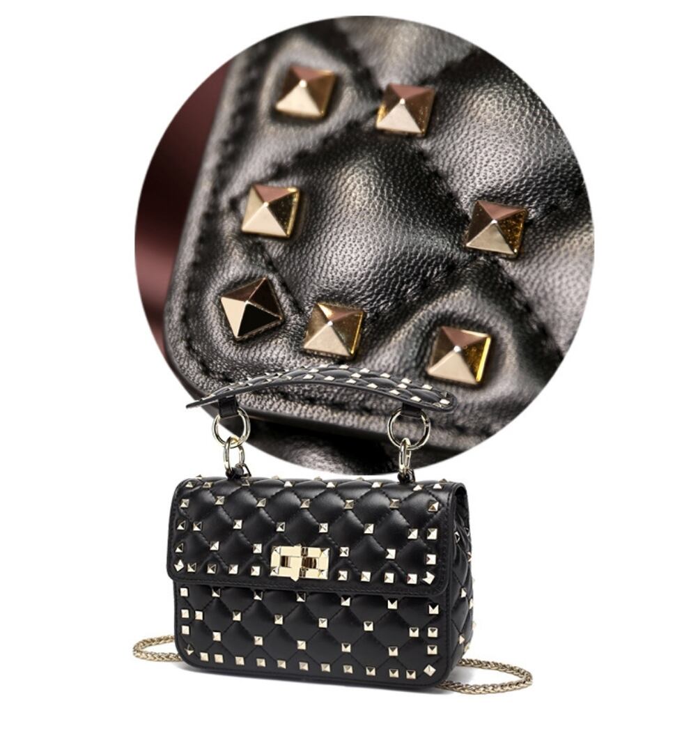 【予約販売】韓国デザイン 本革 レザーショルダーバッグ キルティング スタッズBAG
