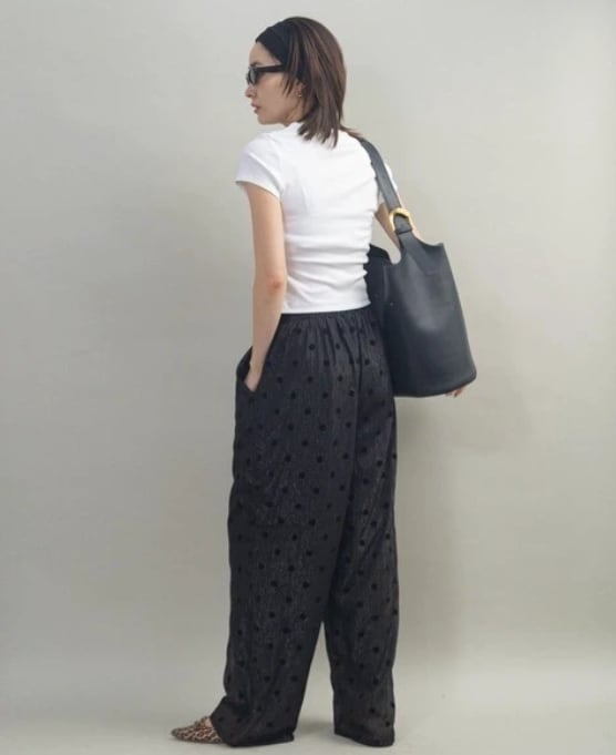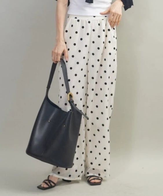 フロッキードット柄のワイドイージーパンツ