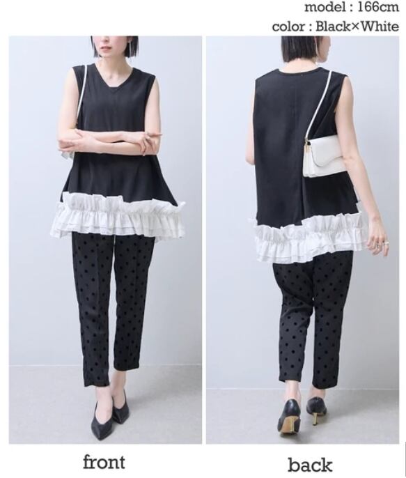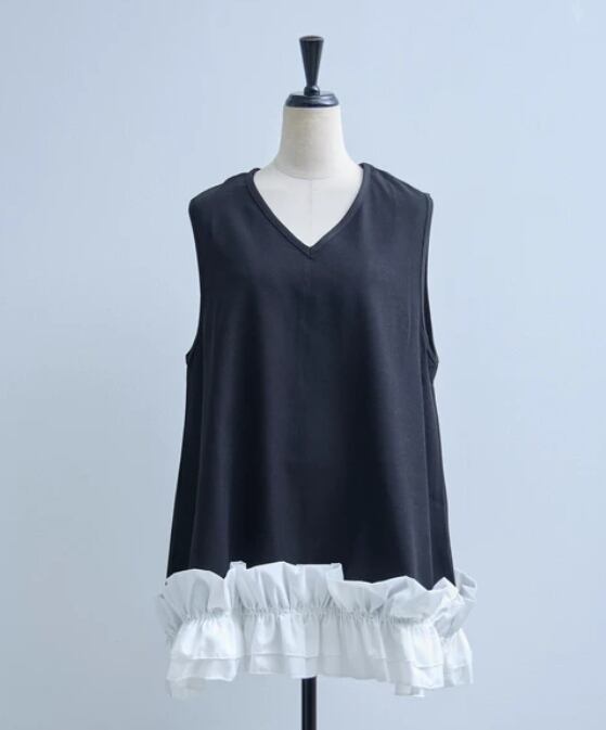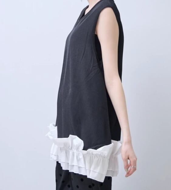 【予約販売】【2026SS】裾ギャザーフリル Vネック ノースリーブチュニック