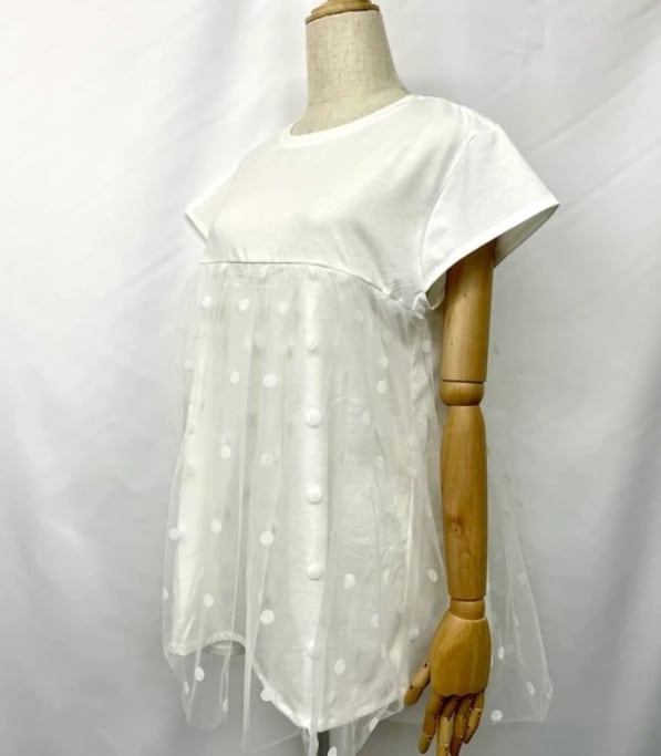 【予約販売】【2026SS】ドットAラインチュールレイヤード風Tシャツ トップス