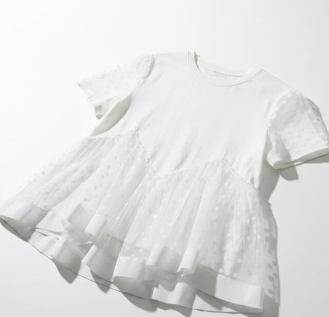 【予約販売】【2026SS】ドットAラインチュールレイヤード風Tシャツ トップス