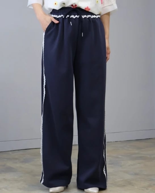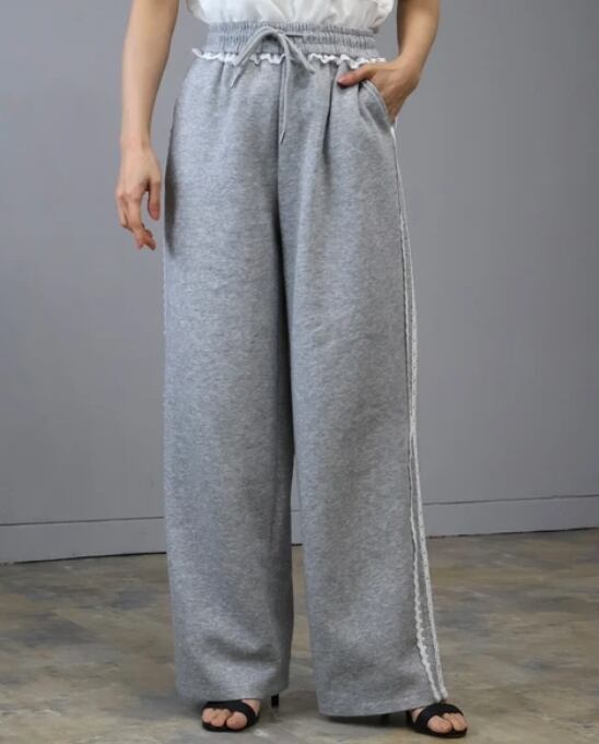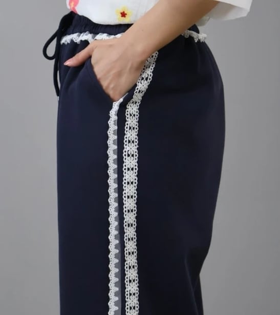 さりげない甘さをプラスした、大人可愛いレースラインパンツ。