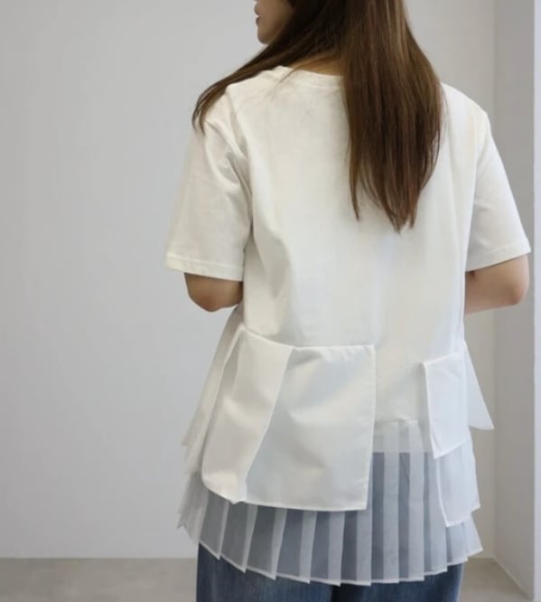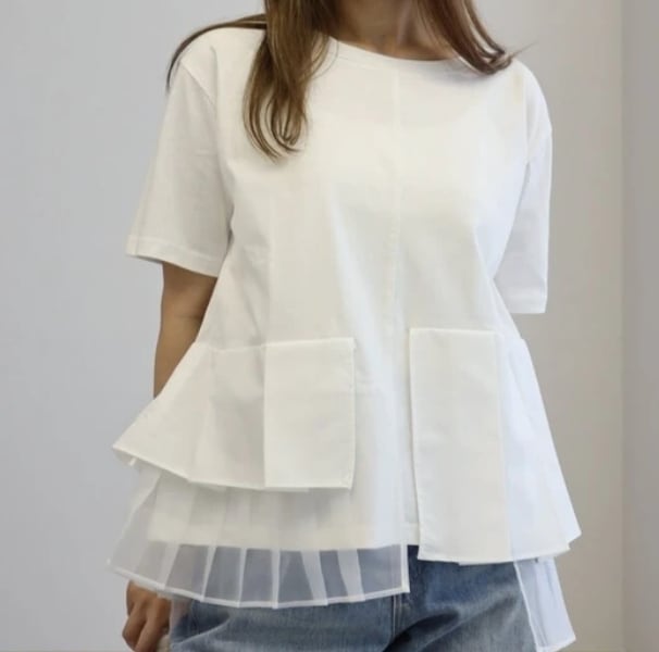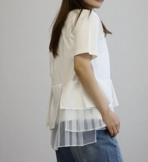 【予約販売】裾チュールレイヤード風トップス/異素材切替 ペプラムTシャツ