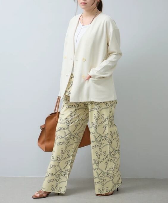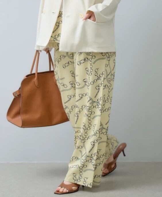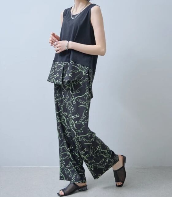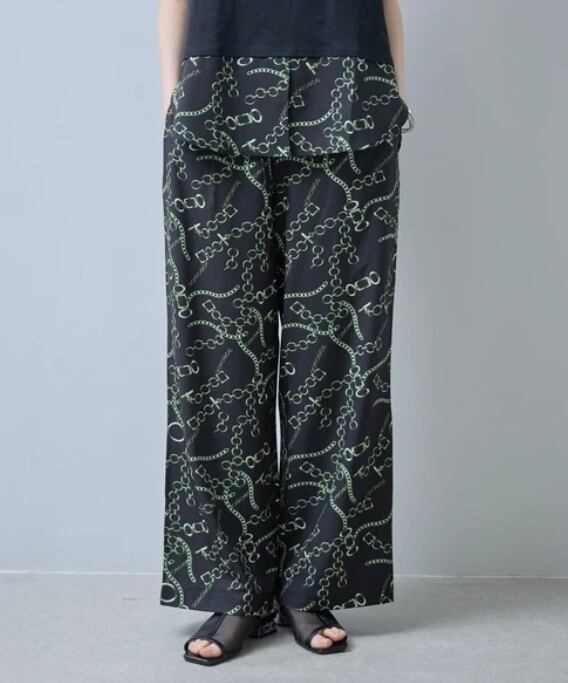 【予約販売】(セットアップ可)ウエストゴム チェーンスカーフ柄ワイドパンツ