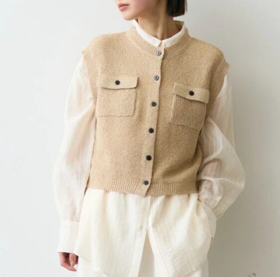 【予約販売】(2026SS)ガーター編みポケット付きベスト サマーニット ベスト