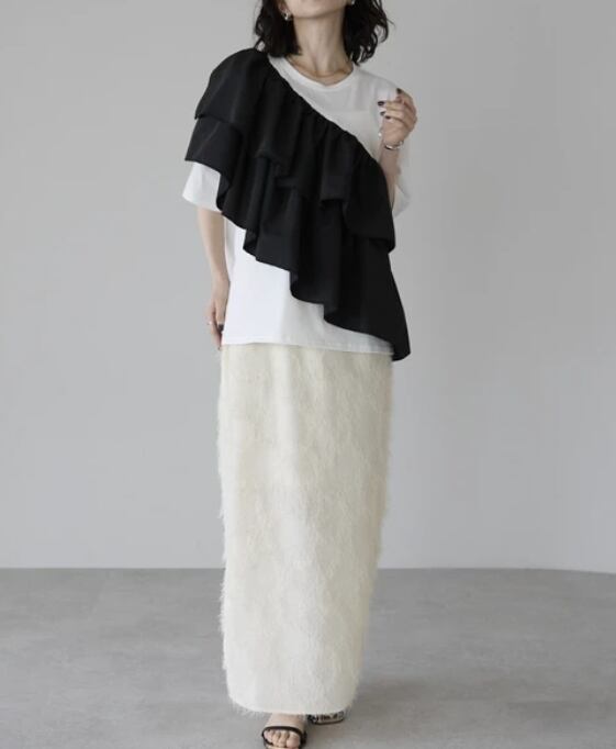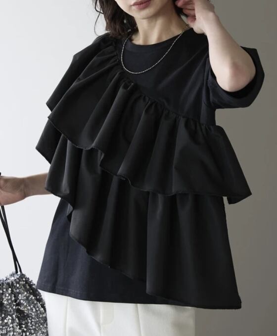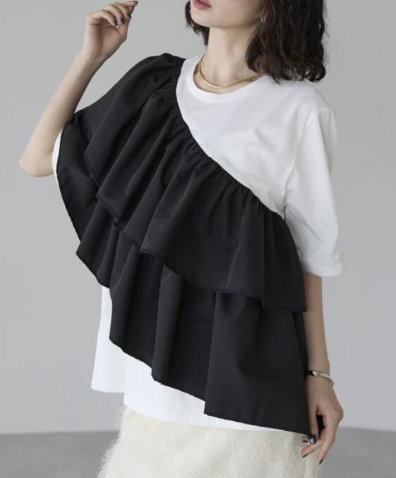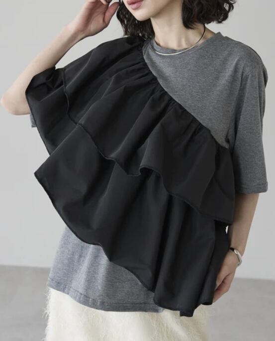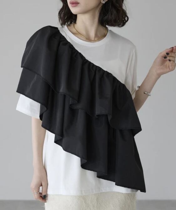 【予約販売】(2026SS)アシメフリルドッキングチュニック Tシャツ トップス