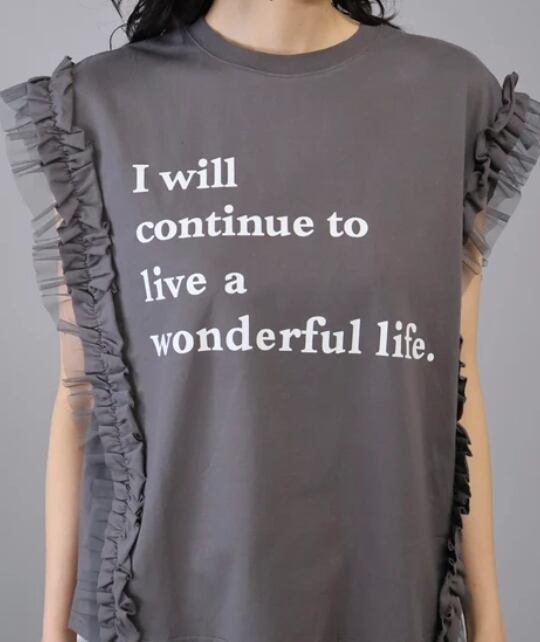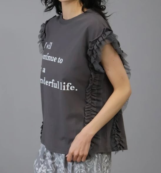 【予約販売】可愛い♪ チュールフリルノースリーブトップス ロゴTシャツ