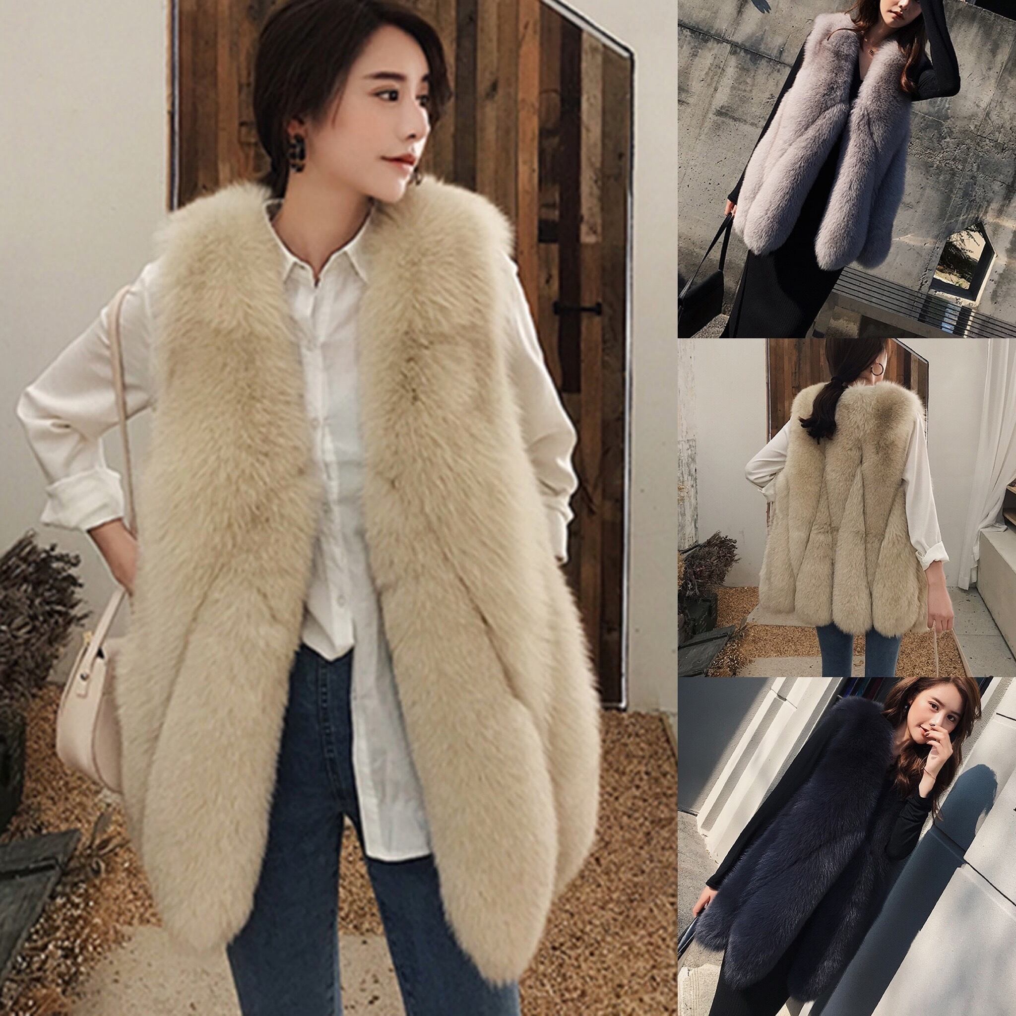 【国内即納】ラスト1点!! おすすめ) 韓国デザイン リアルフォックスファー ロングベスト