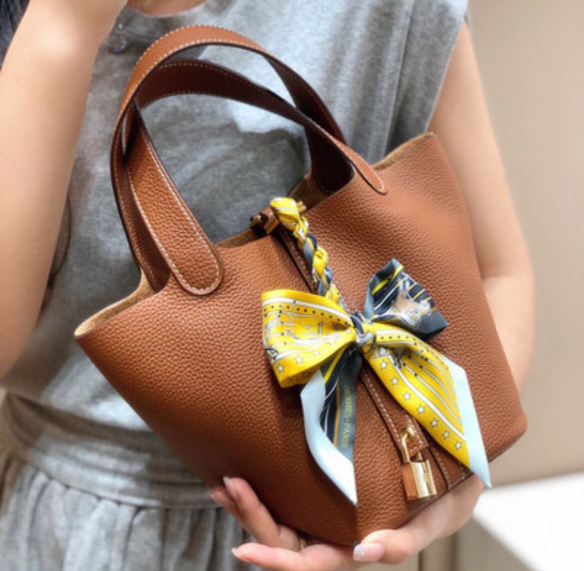 【予約販売】高級本革 トゴ キューブバッグ バケツバッグ ハンドバッグ BAG キャメル